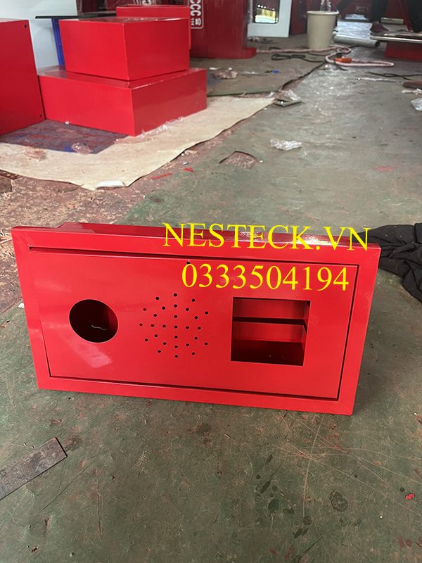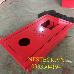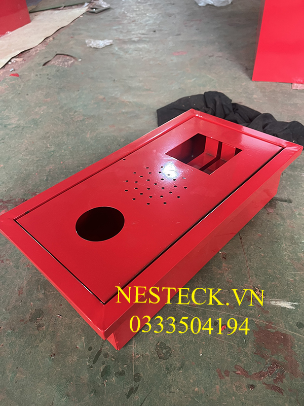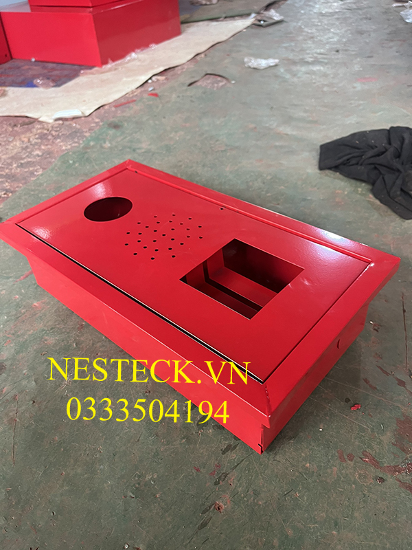 Tổ hợp âm tường màu đỏ được làm từ chất liệu thép tấm với quy trình gia công đầy đủ với máy móc hiện đại.