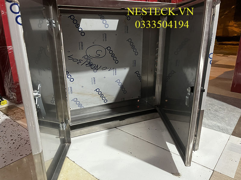 - Tủ điện inox 304 ngoài trời KT 700x500x200x1.0mm, 2 lớp cánh